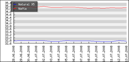 Priemerné ceny PHM v krajoch susediacich so Slovenskom. Ceny sú prepočítané podľa aktuálneho kurzu 1 CZK = 1,29 Sk.