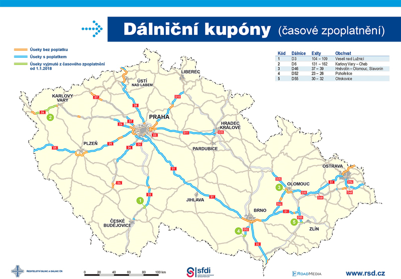 Diaľnice, rýchlostné cesty a cesty pre motorové vozidlá je možné použiť po zaplatení poplatku za užívanie diaľnice a rýchlostnej cesty. Poplatky platné pre rok 2018.