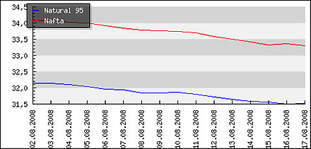 | Priemerné ceny pohonných hmôt v Českej republike k 18.8.2008 |