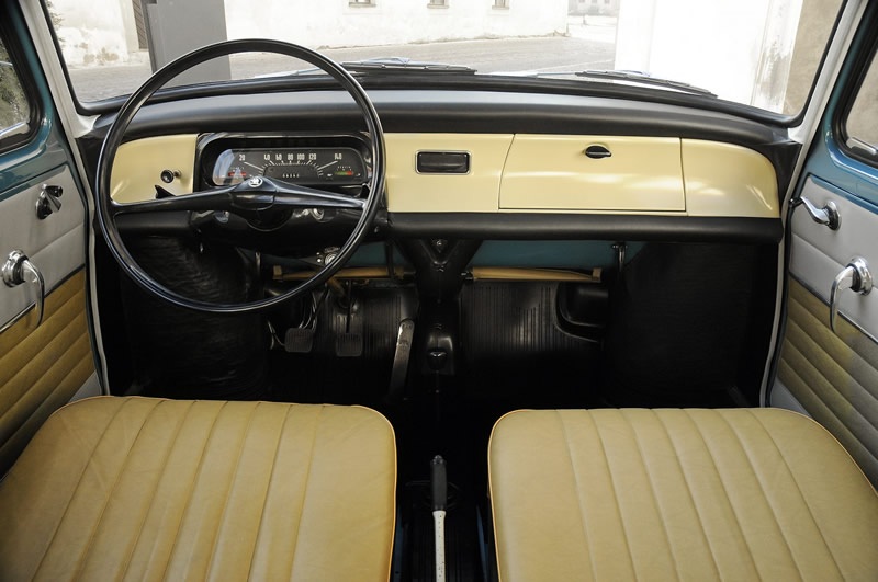 Napriek kompaktným rozmerom (dĺžke 4,17 m, šírke 1,62 m a výške 1,39 m) ponúkala ŠKODA 1000 MB veľmi priestranný a funkčný interiér, k štandardnej výbave patrila napríklad lôžková úprava sedadiel. Vozidlo malo dva batožinové priestory – jeden za zadnými sedadlami, prístupný aj počas jazdy, vpredu vozidla potom druhý s objemom 220 litrov. Pod jeho podlahou bolo uložené rezervné koleso, prístupné po odklopení časti masky. Pre vybratie rezervy tak nebolo potrebné vykladať batožinu.