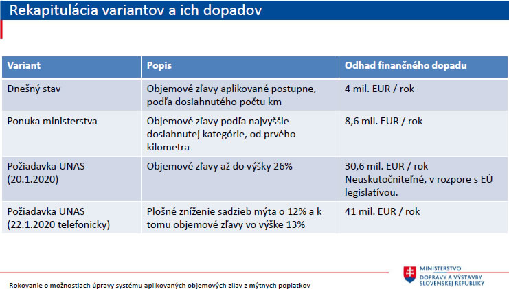 ČESMAD prijal návrh ministerstva dopravy k zľavám na mýte. Potvrdil, že akceptuje ponuku uplatňovať zľavy na všetky kilometre spätne na konci roka. Zástupcovia Únie autodopravcov Slovenska odmietli oba varianty rezortu dopravy na mýtne zľavy pre nákladné vozidlá.