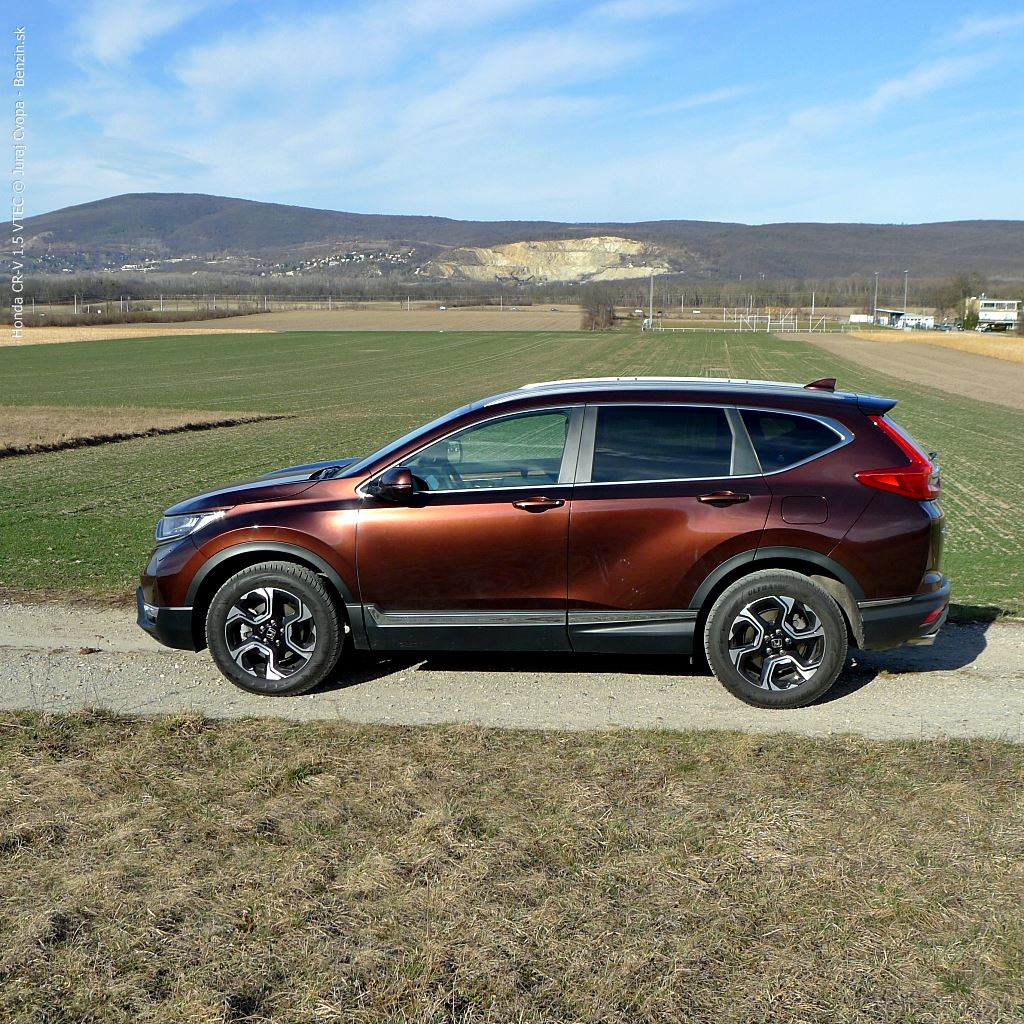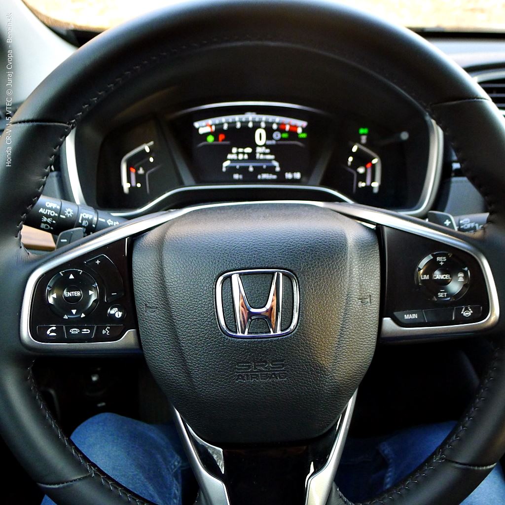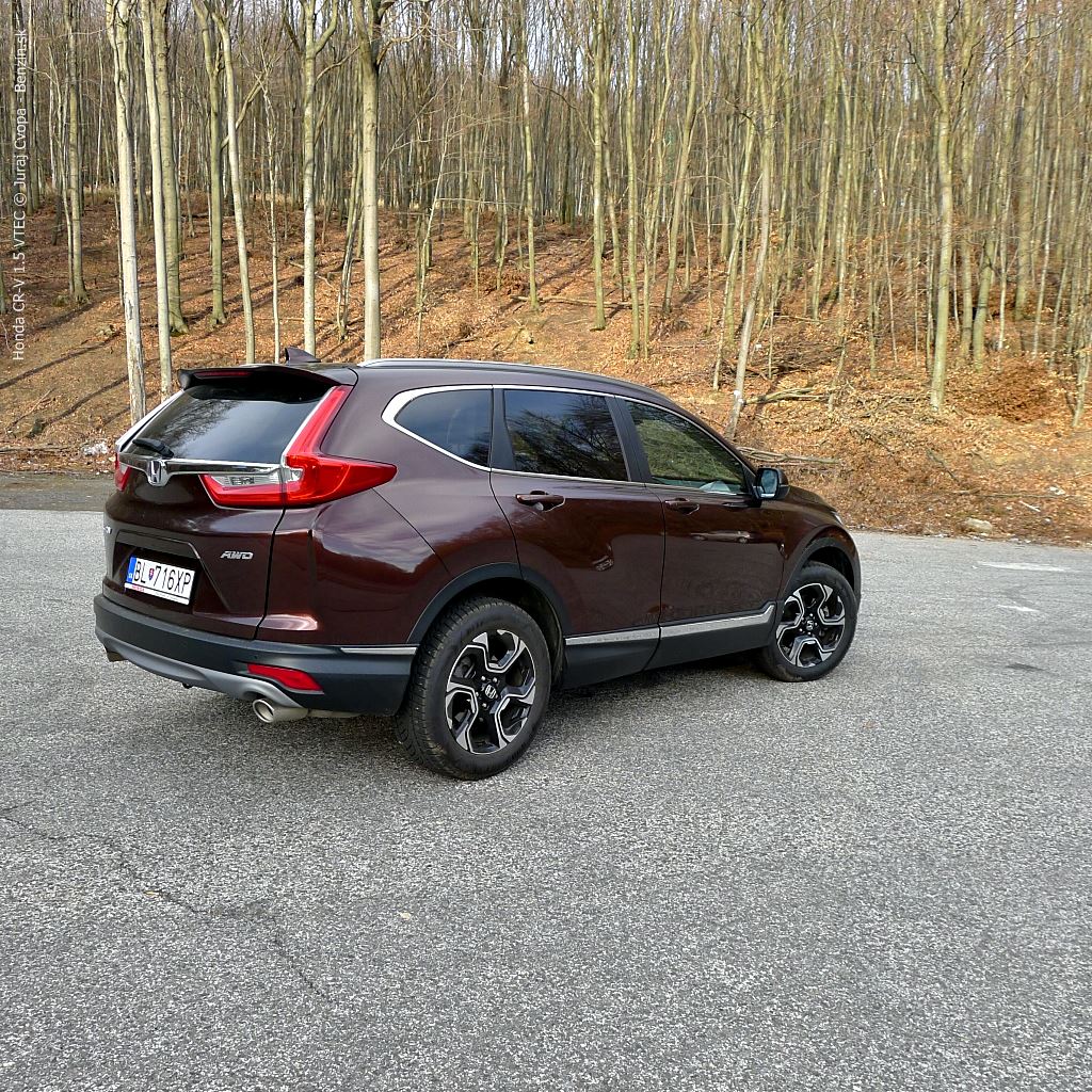 ![]() Do oka udrie značná svetlá výška, ktorá oproti predchodcovi narástla o 35 mm a tak CR-V vyzerá naozaj súca na lesné cesty a kopce, či na zimné dovolenky. A zemitá hnedá metalíza celok podporuje v jeho vlastnostiach, ako uvidíme nižšie. InteriérTak hlavne sa doň treba dostať a to je jeden z dôvodov, prečo si človek SUV kupuje, ľahkosť nástupu. Vodič sa len presunie vo vodorovnej línii za volant. Ten je so svojimi ovládačmi a hrúbkou akurát do ruky. Prístrojový štít mi pripomenul legendárne motocykle Honda CBR – ten čiarový otáčkomer a číslicový rýchlomer, to určite nebude náhoda. Ani to, že je dobre čitateľný, prehľadný a farebne vyvážený. ![]() Podobne aj infotainment, prvý krát som na to pozrel a viac menej bolo jasné čo a ako, pomohla aj lokalizácia do slovenčiny. Navigácia vie ponúknuť viacero ciest priamo na mape, čo som ocenil, keďže nebolo treba nastavovať a vypínať diaľnice, keď ich nechcem použiť. Cez obrazovku infotainmentu sa ovláda aj smer prúdenia vzduchu vetrania či klimatizácie, na intenzitu ešte ostali tlačítka, čo oceňujem. ![]() Potešia aj nabíjacie možnosti vrátane viacerých USB, ale aj pripojenie HDMI. Stredová lakťová opierka je široká na dve ruky, čo dobrorečia spolujazdci, keďže vodič ju nezaberie celú. Mimo to je aj posuvná, akurát do výšky sa jej nechce. A tak musím ísť dolu so sedadlom. Premyslená stredová konzola poslúži aj peňaženkám, či smart vecičkám, ktorým dochádza šťava. Výborné je audio. Chytá signál tam, kde staršie autá ani nechyrujú, že nejaký je. Napr. sa dá počúvať Slovenský rozhlas vo Viedni a po pravde som objavil aj novú stanicu. ![]() Nebudem menovať Rádio Junior, ale je to skvelá pomôcka pokiaľ máte v aute deti. Celú cestu ani nepípnu. Jediný krát som musel pozerať na otrčenú spodnú gambu staršej dcéry, keď som jej oznámil, že na sedadle spolujazdca nie je Isofix a teda ide opäť dozadu. Keď sme pri deťoch a detských sedačkách, tie sú vždy na krajných zadných sedadlách. Upevňujú sa výborne, kotviace body vidno pod poťahmi upevnenými suchým zipsom. Operadlá druhej rady sedadiel sa dajú polohovať a sedačky ako také pozdĺžne posúvať, čo iste ocenia mnohí. Má to aj iný význam. Posuv totiž dopĺňa možnosť celú sedačku vyklopiť vpred, čo buď zväčší batožinový priestor, alebo umožní nástup do tretej rady sedadiel. A tam sa teraz presunieme. ![]() Objavíme tu dve nezávisle sklopné sedačky plnohodnotných rozmerov. Sedenie na týchto miestach presunie kolená do výšky. Pre komfort v poslednej rade je nutné posunúť strednú radu vpred a teda tam bude trošku menej miesta na nohy. Stále je to však plne použiteľná konfigurácia a iste ju ocenia užívatelia, ktorí príležitostne vezú viac osôb. Nutno podotknúť, že batožinový priestor sa pri sedemmiestnej konfigurácii scvrkne na minimum. No aj tak tu ešte nájdeme mini dvojitú podlahu a možnosť nejako sa vynájsť a čo to odložiť. Jej veko je veľmi robustné a znesie záťaž, pod ním nájdeme polystyrénovú vložku a pod ňou dojazdovú rezervu s náradím. Palec hore za to, normálne sa už dáva len lepiaca sada a tú pri väčších škodách na pneumatike nemožno použiť. ![]() Ak sa tretia rada nevyužíva a je sklopená, tvorí na podlahe mierny stupienok. Objemný batožinový priestor sa dá deliť sklopením operadiel tretej aj druhej rady potiahnutím za textilné tiahlo na ich vrcholci. Vyklopenie naspäť je ľahké. Veko piatych dverí sa obsluhuje manuálne a otvára sa dostatočne vysoko aj pre odrastenejšíe postavy. PohonMáme tu benzínový motor objemu 1.5 s preplňovaním turbodúchadlom o výkone 142 kW a krútiacom momente 243 Nm. Ďalej prevodovku s plynule meniteľným prevodovým pomerom CVT s možnosťou usmerňovania prevodového pomeru pádlami pod volantom v rámci fiktívnych prevodových stupňov. ![]() Náhon na štyri kolesá Real Time 4WD poháňa primárne prednú nápravu a podľa aktuálnej potreby smeruje hnaciu silu aj na tú zadnú, treba rátať so softvérovým obmedzením toku krútiaceho momentu v prípade hrozby preťaženia zadného diferenciálu. K tomu som si prečítal v návode na použitie, že CR-V je primárne stavaná na použitie na spevnených cestách a väčšia svetlá výška sa dá použiť na cestách lesných. Takže žiadny off-road prosím.