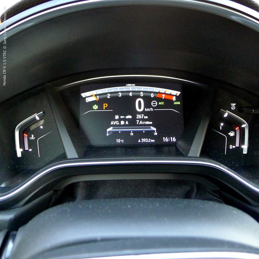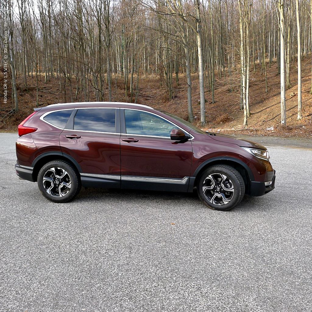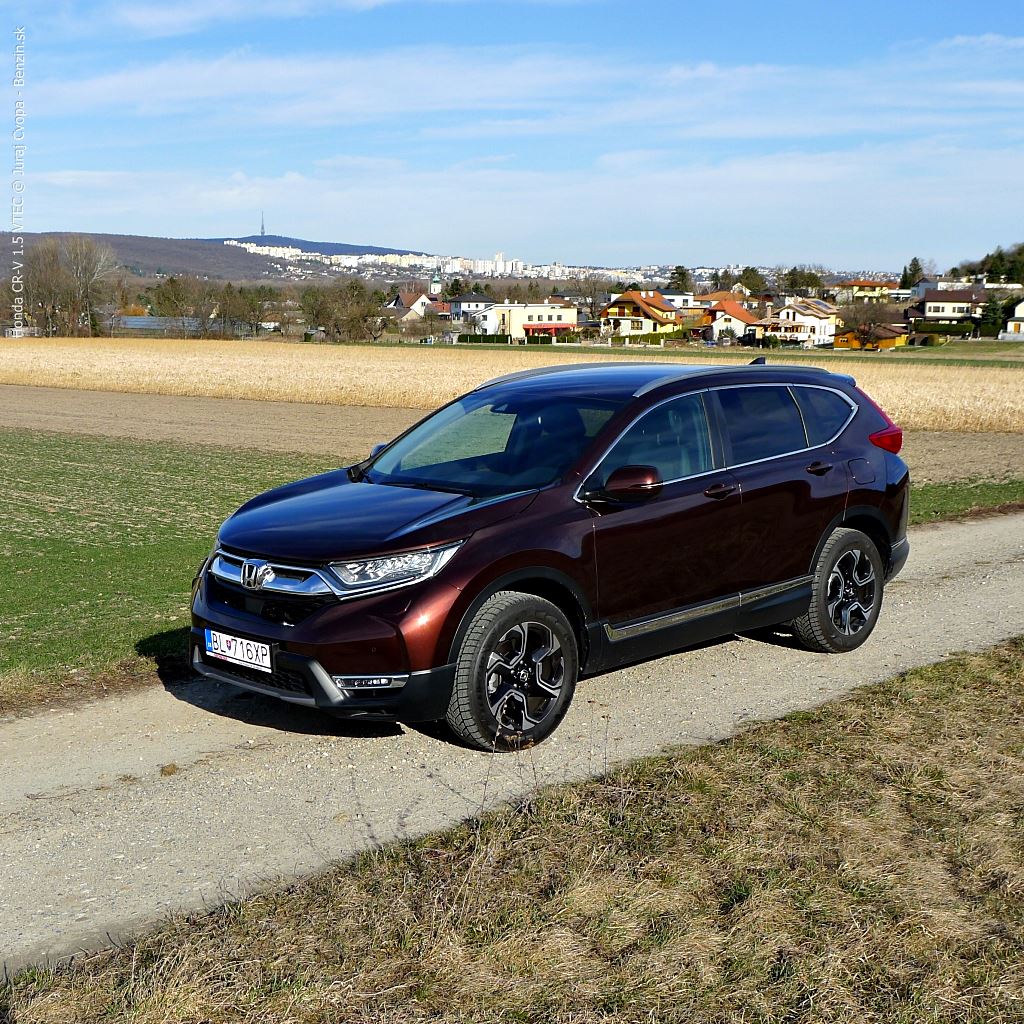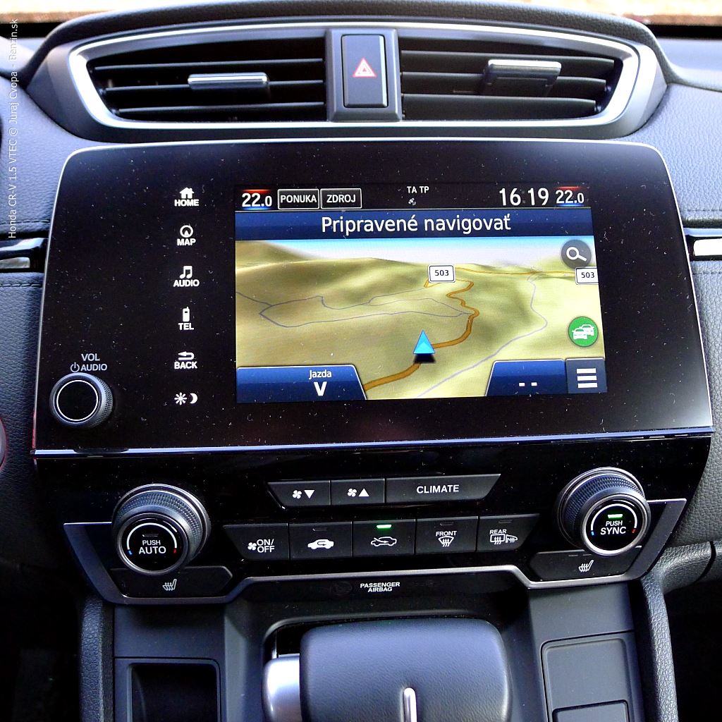 ![]() Do oka udrie značná svetlá výška, ktorá oproti predchodcovi narástla o 35 mm a tak CR-V vyzerá naozaj súca na lesné cesty a kopce, či na zimné dovolenky. A zemitá hnedá metalíza celok podporuje v jeho vlastnostiach, ako uvidíme nižšie. InteriérTak hlavne sa doň treba dostať a to je jeden z dôvodov, prečo si človek SUV kupuje, ľahkosť nástupu. Vodič sa len presunie vo vodorovnej línii za volant. Ten je so svojimi ovládačmi a hrúbkou akurát do ruky. Prístrojový štít mi pripomenul legendárne motocykle Honda CBR – ten čiarový otáčkomer a číslicový rýchlomer, to určite nebude náhoda. Ani to, že je dobre čitateľný, prehľadný a farebne vyvážený. ![]() Podobne aj infotainment, prvý krát som na to pozrel a viac menej bolo jasné čo a ako, pomohla aj lokalizácia do slovenčiny. Navigácia vie ponúknuť viacero ciest priamo na mape, čo som ocenil, keďže nebolo treba nastavovať a vypínať diaľnice, keď ich nechcem použiť. Cez obrazovku infotainmentu sa ovláda aj smer prúdenia vzduchu vetrania či klimatizácie, na intenzitu ešte ostali tlačítka, čo oceňujem. ![]() Potešia aj nabíjacie možnosti vrátane viacerých USB, ale aj pripojenie HDMI. Stredová lakťová opierka je široká na dve ruky, čo dobrorečia spolujazdci, keďže vodič ju nezaberie celú. Mimo to je aj posuvná, akurát do výšky sa jej nechce. A tak musím ísť dolu so sedadlom. Premyslená stredová konzola poslúži aj peňaženkám, či smart vecičkám, ktorým dochádza šťava. Výborné je audio. Chytá signál tam, kde staršie autá ani nechyrujú, že nejaký je. Napr. sa dá počúvať Slovenský rozhlas vo Viedni a po pravde som objavil aj novú stanicu. ![]() Nebudem menovať Rádio Junior, ale je to skvelá pomôcka pokiaľ máte v aute deti. Celú cestu ani nepípnu. Jediný krát som musel pozerať na otrčenú spodnú gambu staršej dcéry, keď som jej oznámil, že na sedadle spolujazdca nie je Isofix a teda ide opäť dozadu. Keď sme pri deťoch a detských sedačkách, tie sú vždy na krajných zadných sedadlách. Upevňujú sa výborne, kotviace body vidno pod poťahmi upevnenými suchým zipsom. Operadlá druhej rady sedadiel sa dajú polohovať a sedačky ako také pozdĺžne posúvať, čo iste ocenia mnohí. Má to aj iný význam. Posuv totiž dopĺňa možnosť celú sedačku vyklopiť vpred, čo buď zväčší batožinový priestor, alebo umožní nástup do tretej rady sedadiel. A tam sa teraz presunieme. ![]() Objavíme tu dve nezávisle sklopné sedačky plnohodnotných rozmerov. Sedenie na týchto miestach presunie kolená do výšky. Pre komfort v poslednej rade je nutné posunúť strednú radu vpred a teda tam bude trošku menej miesta na nohy. Stále je to však plne použiteľná konfigurácia a iste ju ocenia užívatelia, ktorí príležitostne vezú viac osôb. Nutno podotknúť, že batožinový priestor sa pri sedemmiestnej konfigurácii scvrkne na minimum. No aj tak tu ešte nájdeme mini dvojitú podlahu a možnosť nejako sa vynájsť a čo to odložiť. Jej veko je veľmi robustné a znesie záťaž, pod ním nájdeme polystyrénovú vložku a pod ňou dojazdovú rezervu s náradím. Palec hore za to, normálne sa už dáva len lepiaca sada a tú pri väčších škodách na pneumatike nemožno použiť. ![]() Ak sa tretia rada nevyužíva a je sklopená, tvorí na podlahe mierny stupienok. Objemný batožinový priestor sa dá deliť sklopením operadiel tretej aj druhej rady potiahnutím za textilné tiahlo na ich vrcholci. Vyklopenie naspäť je ľahké. Veko piatych dverí sa obsluhuje manuálne a otvára sa dostatočne vysoko aj pre odrastenejšíe postavy. PohonMáme tu benzínový motor objemu 1.5 s preplňovaním turbodúchadlom o výkone 142 kW a krútiacom momente 243 Nm. Ďalej prevodovku s plynule meniteľným prevodovým pomerom CVT s možnosťou usmerňovania prevodového pomeru pádlami pod volantom v rámci fiktívnych prevodových stupňov. ![]() Náhon na štyri kolesá Real Time 4WD poháňa primárne prednú nápravu a podľa aktuálnej potreby smeruje hnaciu silu aj na tú zadnú, treba rátať so softvérovým obmedzením toku krútiaceho momentu v prípade hrozby preťaženia zadného diferenciálu. K tomu som si prečítal v návode na použitie, že CR-V je primárne stavaná na použitie na spevnených cestách a väčšia svetlá výška sa dá použiť na cestách lesných. Takže žiadny off-road prosím.