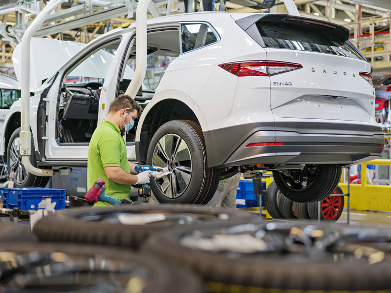 Po niekoľkotýždňovom prerušení spoločnosť ŠKODA AUTO obnovila výrobu modelu ENYAQ iV. Spočiatku bude z liniek schádzať približne 1 000 vozidiel za týždeň, kapacita sa však bude postupne navyšovať. Dôvodom pre prerušenie výroby boli obmedzené dodávky káblových zväzkov od dodávateľov z Ukrajiny.