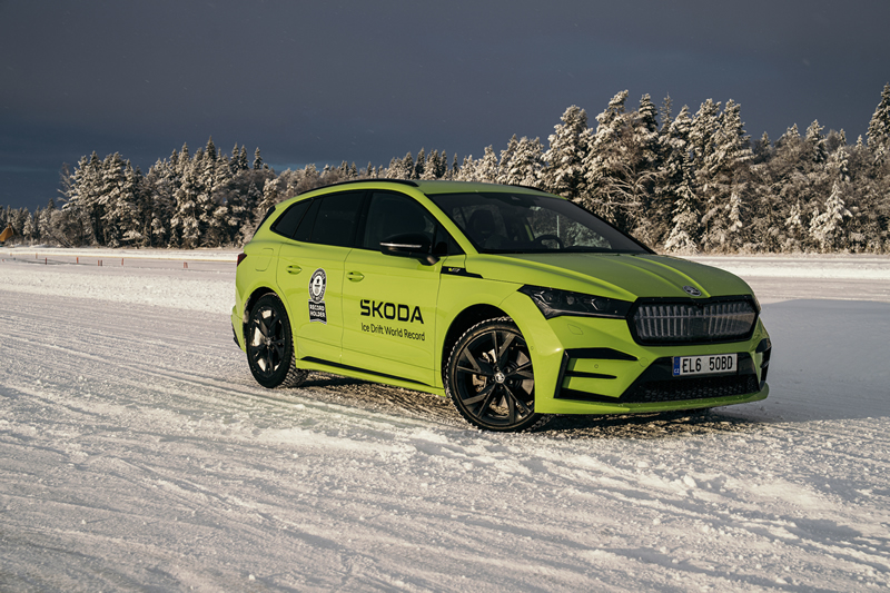 Enyaq RS iV, ktorý riadil motoristický novinár Richard Meaden, si pripísal rekord za najdlhší nepretržitý drift na ľade vďaka prejdenej vzdialenosti 7,351 km.