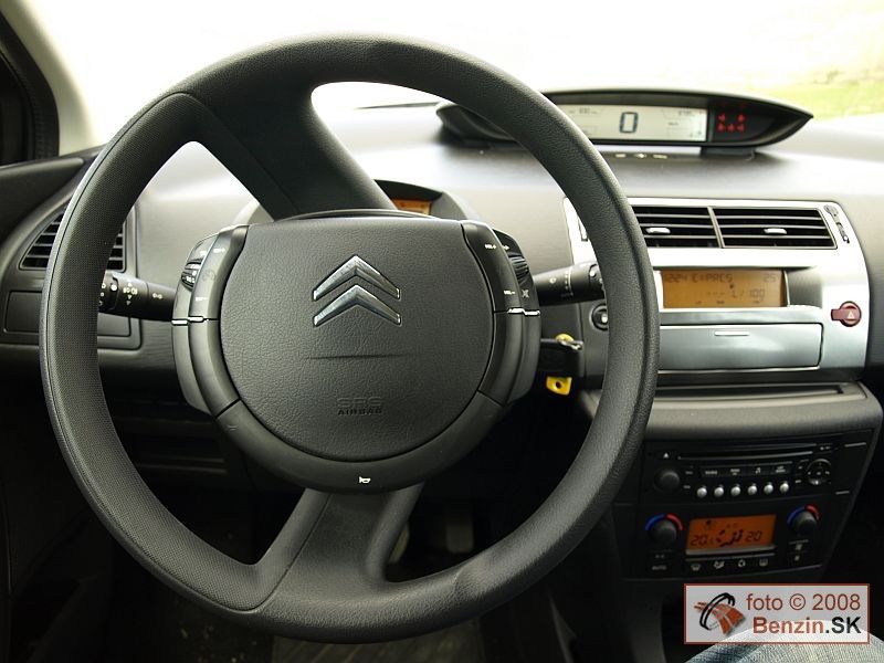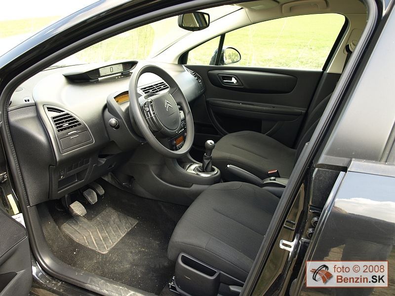 Aj v minulosti sa snažili Citroëny vždy priniesť niečo nového, prekvapivého. S modelom C4 sa to konštruktérom zasa naplno podarilo. Maska prísne zapadá do koncernového zámeru viditeľne prezentovať znak šikmého ozubenia, aj celkový štýl oblých tvarov je dobre čitateľný. Celkový výsledok je osobitý, príjemný a navyše ponúka údaj, na ktorý sa s nástupom vyšších karosérií pomaly zabudlo. Koeficient odporu vzduchu 0,28. Takto aerodynamicky vyzretá karoséria má aj zaujímavý rázvor 2608 mm, z čoho sa tešia najviac pasažieri na zadných sedadlách, ktorí tam môžu užívať dostatok životného priestoru. Čalúnenie sedadiel sa nám zdalo trochu primäkké. Do kufra za piatymi dverami sa zmestí 352 litrov batožiny. Po sklopení zadných sedadiel sa tento priestor rozrastie na 1083 litrov, vysoká hrana vstupného otvoru však ostáva. Postupne sme sa prepracovali do interiéru, ktorý pred vami postupne odkrýva množstvo zaujímavostí a prekvapení. V prvom rade sedadlá majú dobré tvarovanie, ktoré podrží telo aj pri prudšom prejazde zákrutami. O bezpečnosť sa starajú dva predné airbagy, dva bočné a dva hlavové. Predné airbagy majú definované nafukovanie podľa sily nárazu.