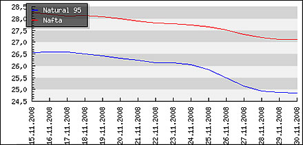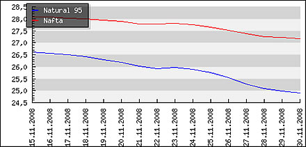 | Priemerné ceny pohonných hmôt v Českej republike k 1.12.2008 |