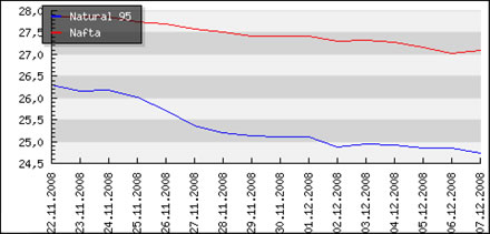 | Priemerné ceny pohonných hmôt v Českej republike k 8.12.2008 |