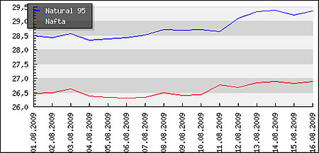 Vývoj priemerných cien pohonných hmôt v Moravskoslezskom kraji ČR: ![]()