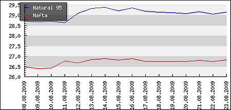 | Priemerné ceny pohonných hmôt v Českej republike k 24.08.2009 |