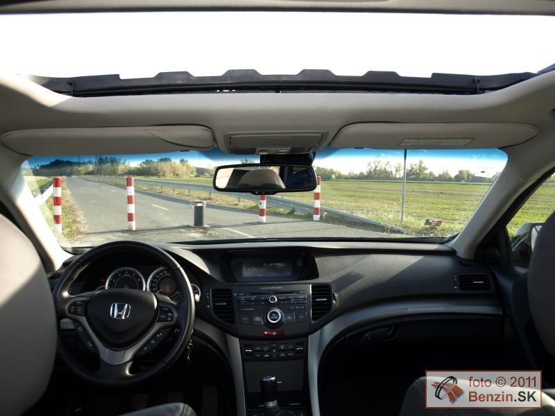 Interiér bol naozaj veľmi dobre vybavený. Cenovej triede zodpovedalo kožené čalúnenie, vyhrievané sedadlá s elektrickým nastavovaním, dvojzónová klimatizácia, elektrické strešné okno, ale aj vzhľadom na väčšiu dĺžku karosérie aj parkovacie senzory, či elektrické zatváranie dverí kufra. Suma-sumárum Honda Accord je športovo – komfortné kombi. Pri pohľade do kufra, sa tento javí trochu nižší, ako je to obvyklé. Nižšia karoséria má aj ďalšie obmedzenie, nástup a výstup z vozidla je naozaj do športového auta, teda určite nie je príjemný pre ľudí s boľavými krížami. No ak sa v tomto aute preveziete, určite vás z nej chrbát bolieť nebude. Jazda je veľmi komfortná a tichá. Sedadlá veľmi dobre tvarované, čo poskytuje aj avizovanú možnosť pre športovejšie založené povahy, oddávať sa radosti z dynamickej jazdy.