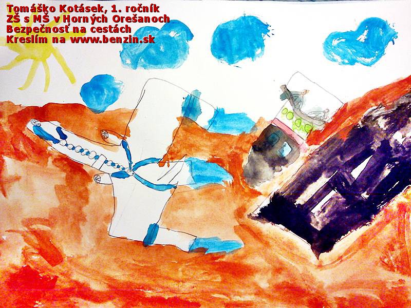 Ja, ako učiteľka, som so žiakmi 1. ročníka maľovala na tému Bezpečnosť na cestách. Všetky výtvarné práce som odoslala mailom a rodičov som písomne informovala o prístupe na web a spôsobe hlasovania. Dvaja moji žiaci sa vtedy umiestnili (za podpory klikajúcich príbuzných) na prvých miestach a tešili sa z výhry, ktorá im bola doručená do školy. Do ďalších kôl sa mohli zapojiť v závislosti od vlastnej aktivity. Túto možnosť využil len Miško Hrebíček. Je to drobný chlapček tichej povahy, ktorý trávi voľný čas tvorivými aktivitami, ktoré pre neho a jeho brata vymýšľa mamina. Napriek systému hlasovania, ktorý v tejto súťaži funguje (rovnako pre každého), oceňujem najmä vytrvalosť a trpezlivosť, ale aj ctižiadostivosť všetkých hlasujúcich:-)