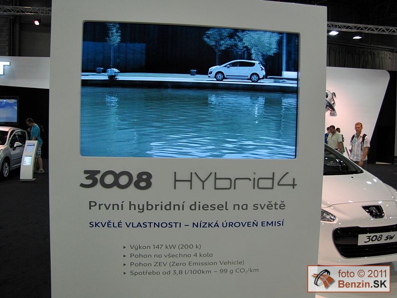 Hlavnou hviezdou značky je futuristický koncept EX1, ale zaujímavých noviniek je ďaleko viac. V pavilóne P vás čaká treba faceliftovaný Peugeot 308 s rekordne nízkymi emisiami alebo prvé hybridné vozidlo na dieselový pohon na svete - model 3008 HYbrid4, ktorý sa v Českej republike začne predávať koncom tohto roka.