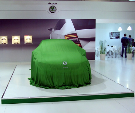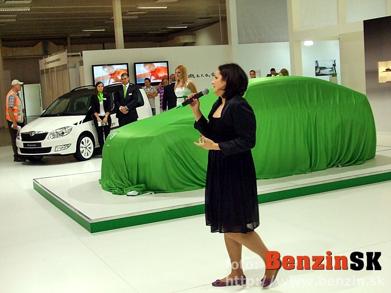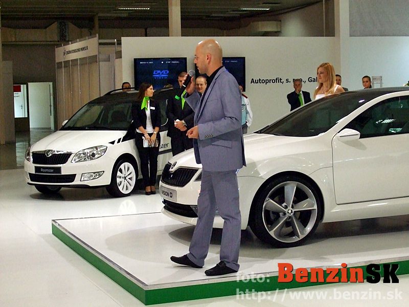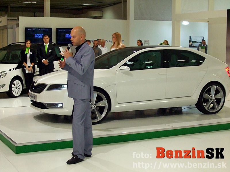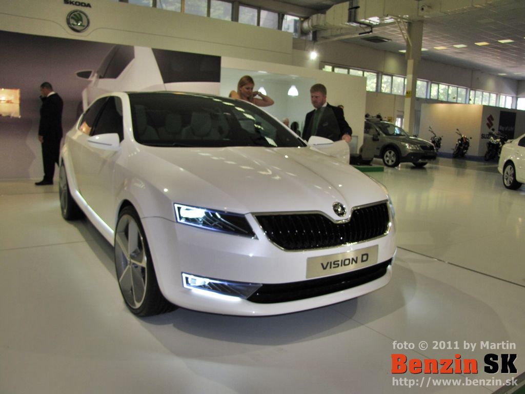 LB: Dobrý deň, vítam vás v mene spoločnosti ŠKODA AUTO na tohtoročnom nitrianskom autosalóne na stánku značky ŠKODA. Dnes aj za vašej prítomnosti odhalíme po prvýkrát na Slovensku krásny koncept - koncept s názvom ŠKODA VisionD. Podarilo sa nám dnes pozvať a aj pozvanie na Slovensko prijal pán doktor Olah, dizajnér spoločnosti ŠKODA AUTO. Dobrý deň... a poprosím pána doktora Olaha a pána Baumgartnera, konateľa spoločnosti ŠKODA AUTO Slovensko, aby tento krásny koncept odhalili...