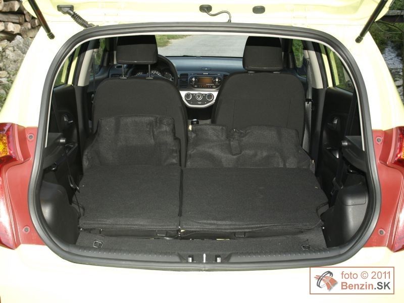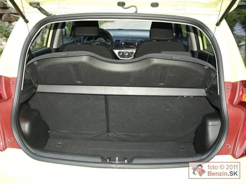 Počas testu sme si ľahko zvykli na to, že vnútorné vybavenie pripomína skôr väčšie a drahšie auto. Klimatizáciu, palubný počítač, elektrické ovládanie okien a zrkadiel, sme brali ako samozrejmosť, podobne ako v smere aktívnej, či pasívnej bezpečnosti systém ESP a sedem airbagov. Autorádio má vstup USB, ale aj ovládanie aj na koženom multifunkčnom volante, ktorý má však len výškové nastavovanie. Automobil sa štartuje bez kľúča, tlačidlom a otváranie dverí je tiež založené na tom, že ovládaciu škatuľku máte vo vrecku a automobil vás podľa toho identifikuje. Treba vziať do úvahy, že sedenie je veľmi pohodlné nielen na predných, ale aj zadných sedadlách.. Určité obmedzenie predstavuje v poňatí rodinného využitia len 200 litrový kufor. Výbornou devízou automobilu Kia Picanto je veľmi dobré dielenské spracovanie, vyzretý a nápaditý dizajn a jazdný komfort najmenej o stupeň vyššie zaradeného auta.