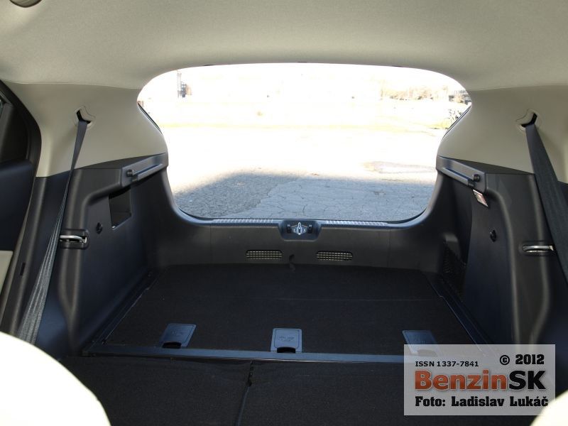 Okrem dobre tvarovaných sedadiel sme boli spokojní aj s krémovo ladeným interiérom. Možno je táto farba poťahov chúlostivejšia na udržanie čistoty, no pocit vo sviežom interiéri za to určite stojí. Objem 288 litrov určených na batožinu patrí k priemeru v triede. Delené zadné operadlá sa dali ľahko sklopiť a vytvorili s dnom batožinového priestoru skoro rovnú plochu. Tá sa však končí pomerne vysokou nakladacou hranou, ale na ňu sme už pri takýchto hatch backoch akosi zvykli. Dvojité dno skrývalo priestor pre drobnejšie predmety, ktoré tam ukryté nemusia lietať počas jazdy po kufri a znervózňovať šoféra. Pod dvojitým dnom sa našli aj tretí priestor, v ktorom bola uložená neplnohodnotná, dojazdová rezerva.