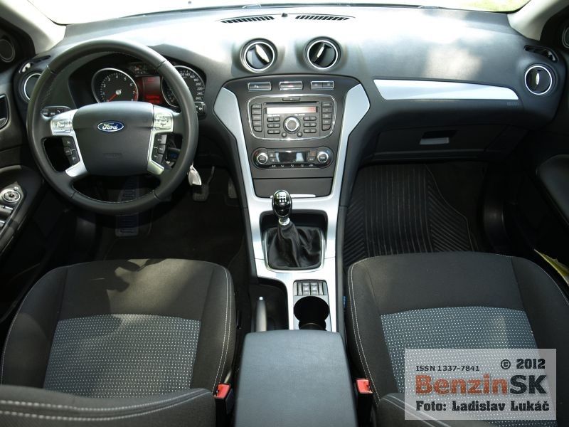 Bočný profil ostáva zachovaný aj pri poslednej generácii Mondea. Moderné prvky, a to najmä technológia LED sa preniesla do koncových a predných svetiel, ktorým samozrejme pristane aj nový tvar. Príjemne sme sa cítili aj po zasadnutí za volant. Je samozrejme v koži s nastavovaním v dvoch osiach a jeho multifunkčné možnosti dovoľujú ovládať niektoré funkcie ako napríklad tempomat bez toho, aby ste z neho zložili ruky. Šoférovo sedadlo má mechanický posuv no jeho zdvíhanie je elektrické, podobne ako aj vyhrievanie sedadla.