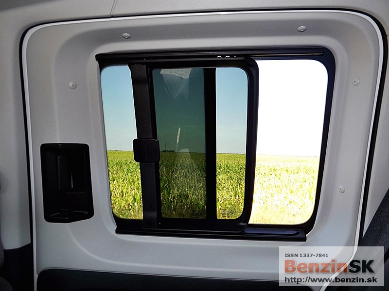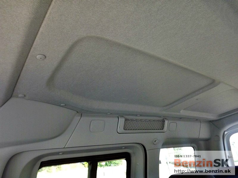 Interiér je jednoduchý ale praktický, vodič sa v ňom rýchlo zorientuje a má všetko na dosah. Interiér je obložený plastom, takže sa snaží priblížiť autu, ktoré cez týždeň pracuje, ale cez víkend vozí rodinu. Oplastované sú vnútorné stĺpiky a posúvacie dvere. ![]()