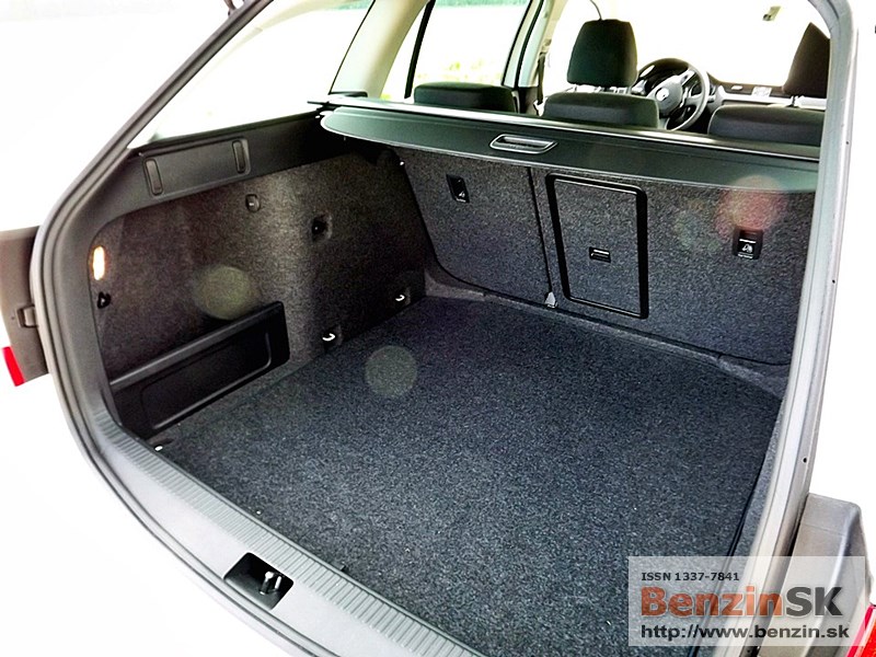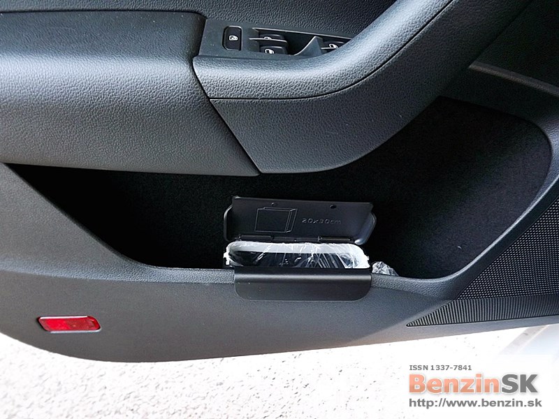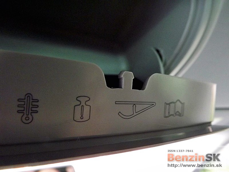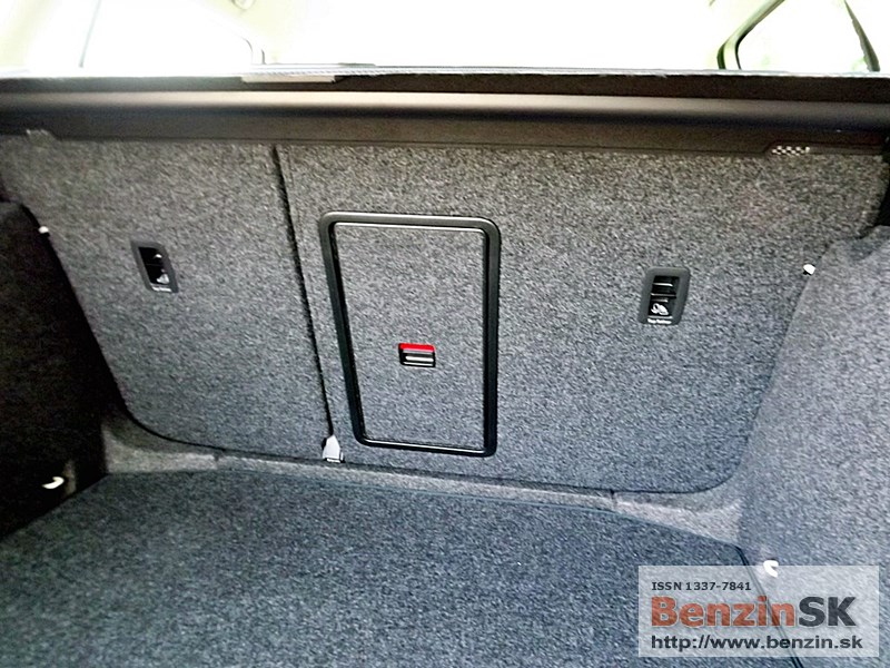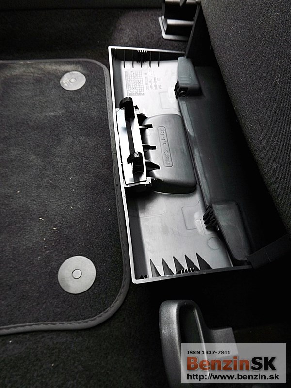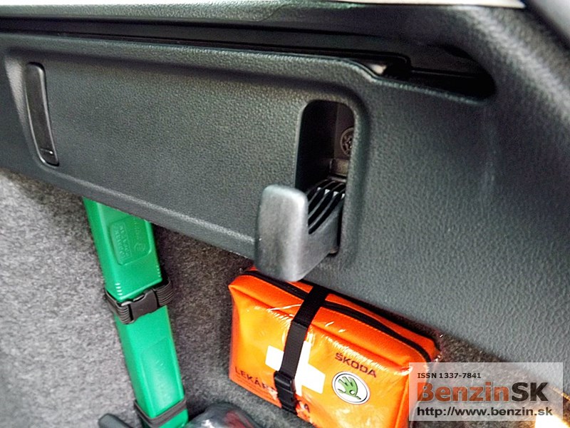 obojstranný koberec. Ak veziete čisté veci, môžete ho používať tkaninou smerom nahor. Ak je to potrebné, koberec otočíte na druhú stranu, gumenú a umývateľnú. Chválime aj tzv. cargo elementy, ktoré dokážu zabrániť neželanému pohybu batožiny počas jazdy. Jedná sa o dvojicu plastových dielov so suchým zipsom, ktoré sú uložené v stenách priehradok za zadnými podbehmi. Už samozrejmou výbavou je aj dvojitý sklopný háčik na zavesenie tašiek.
