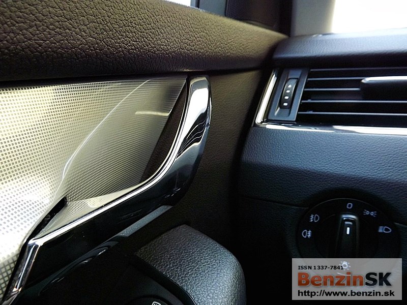 dverách a množstvo pochrómovaných prvkov, ako je lišta na volante, rámy vetracích otvorov, hlavica