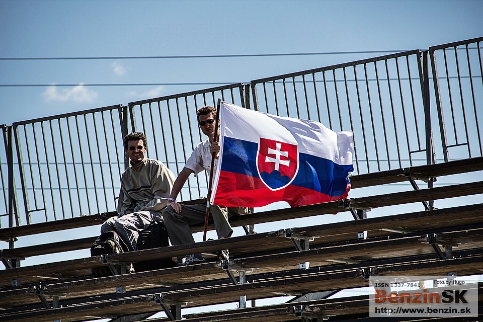 ![]() Okrem týchto ľudí, ktorí sa starajú o pohodlie pretekárov, je tu úplne prázdno. Žiadny pretekár, žiadny organizátor. Mimo oficiálneho paddocku, vedľa príjazdovej cesty za Centrom bezpečnej jazdy, bol situovaný paddock ostatných sprievodných sérii po hlavnej udalosti WTCC. Zatiaľ čo WTCC paddock bol takmer prázdny, tu to žilo viac. U malých tímov je vidno všetko to nadšenie, ktoré pretekaniu venujú. Úplne na konci nekonečne dlhej cesty má rozložený kamión aj tím ARC Bratislava, s ktorým som strávil podstatnú časť víkendu. ![]() Keďže predpoveď počasia na nedeľu nenadchla asi nikoho, rozhodli sme sa vydať na cestu aj v sobotu. Ako sa neskôr ukázalo, bol to brilantný ťah! Celý deň bolo príjemne a slnečno, ale predsa len silný vietor. Na programe boli voľné a kvalifikačné jazdy a 3 ostré preteky všetkých kategórií, ktoré sa zúčastňovali víkendu – FIA WTCC, FIA ETCC, KIA Lotos Race, SVK&HUN Touring Cars Camhpionship, Formel Cars HUN Championship a Suzuki Swift Cup. Napriek krásnemu počasiu a ideálnym podmienkam na pretekanie, veľa divákov si v sobotu cestu na okruh nenašlo. Môžu ľutovať... V sobotu totiž už život pulzuje aj v oficiálnom paddocku WTCC, kde bolo v piatok večer pusto. ![]() Honda ako jedna z najväčších automobiliek v seriáli sa opäť nezaprela a do svojho promo stánku napratala množstvo zaujímavých simulátorov, ukážok motorov zo svojich áut a pred stánkom, či skôr poriadne veľkým stanom nechýbali pre porovnanie ani jeden zo starších modelov Tarquiniho Hondy Civic WTCC a tohtoročný model. V nedeľu pribudla aj nadupaná Acura NSX. Na jednom zo simulátorov sa odjazdené časy zhromažďovali a na konci víkendu mali byť 3 najrýchlejší odmenení jazdou na sedadle spolujazdca v aute špecifikácie WTCC. Či sa tak nakoniec kvôli nepriazni počasia stalo ale naozaj neviem. Mne sa to napriek všetkému úsiliu podarilo vytiahnuť najlepšie na 14. miesto. ![]() Na skutočnej trati sa medzitým začalo pravé šialenstvo. Domácich priaznivcov určite potešil víťaz kvalifikácie FIA ETCC Maťo Homola na svojom BMW E90 320 TC. Prvý nedeľný pretek síce úplne nezvládol a do cieľa prišiel až deviaty, v druhom preteku sa mu ale podarilo zvíťaziť pred dvakrát druhým Petrom Fulínom z Česka. V oboch závodoch si na svoje konto pripísal aj najrýchlejšie kolo. ![]() Kvalifikáciu v sérii SVK&HUN Touring Cars Camhpionship so skutočne rôznorodým zastúpením (od Suzuki Swift, Hondy Civic, cez BMW Alpina GT3, Quantis Silver String a Porsche Cup S až po mocný americký Saleen S7R) ovládli Konôpkovci z tímu ARC Bratislava. V samotnom preteku potom Miro Konôpka na svojom Saleene S7R zvádzal skvelé súboje s BMW Alpinou GT3 Atilu Bartu. Bolo sa na čo pozerať. Kto si chcel po tomto preteku užiť ďalšiu zábavu navyše, musel zamieriť pred Hotel Ring, kde sa nachádzalo parc fermé. Verte alebo nie, ale za štartujúci Saleen sa postavíte z vlastnej vôle iba raz – uši v každom prípade budú krvácať, nech už stojíte kdekoľvek. Napriek približne 650 koňom, ktoré má Miro Konôpka priamo za hlavou bola táto 15-ročná beštia o celé 2 sekundy na kolo pomalšia ako moderné stroje WTCC, ktoré zo svojho 1,6L prepĺňaného motora vymačknú 380 koní. Rozdiel v modernej technike je naozaj markantný. ![]() Kvalifikáciu pred asi najväčšou hviezdou motoršportu Sebom Loebom vyhral José Maria López, ktorý ako jediný stlačil čas pod 2:04. Medzičasom sa stihneme odfotografovať s Yvanom Mullerom, Tomom Chiltonom, Sebom Loebom a Olivierom Panisom. Večer odchádzame domov spokojní a ako každý rok aj spálení od slnka. ![]() Nedeľa doobeda, počasie bolo ešte stále celkom normálne. Pod mrakom, ale bez dažďa. Po 12:00 hodine sa všetko zlomilo. Začalo to miernym dažďom. To už mala séria ETCC hotovo a odštartoval sa aj prvý pretek hlavného podujatia celého víkendu WTCC. Dážď zosilnel natoľko, že v deviatom kole z jedenástich videli jazdci červené vlajky a pretek tak bol neutralizovaný. Vyhral Loeb pred Lópezom a Maďarom Norbertom Micheliszom, ktorý mal na Slovakia Ringu tradične najviac fanúšikov. Nanešťastie, dážď neprestával. Po preteku sa úplne plné tribúny skryté pod stovkami dáždnikov rozpŕchli po pár minútach a okruh ostal opäť prázdny. Druhý pretek WTCC bol dokonca zrušený, takže všetci, ktorí odišli tento raz o nič neprišli. ![]() Odporúčame všetkým zúčastniť sa úplne celého závodného víkendu od piatku až nedele. Každý deň je k videniu niečo iné a každý je niečím špecifický. ![]() So suvenírom v podobe dvoch použitých pretekárskych pneumatík Michelin (ktoré sa mimochodom takmer ani nezmestili do auta) odchádzame domov nadšení a unavení zároveň. Fotogaléria k článku: