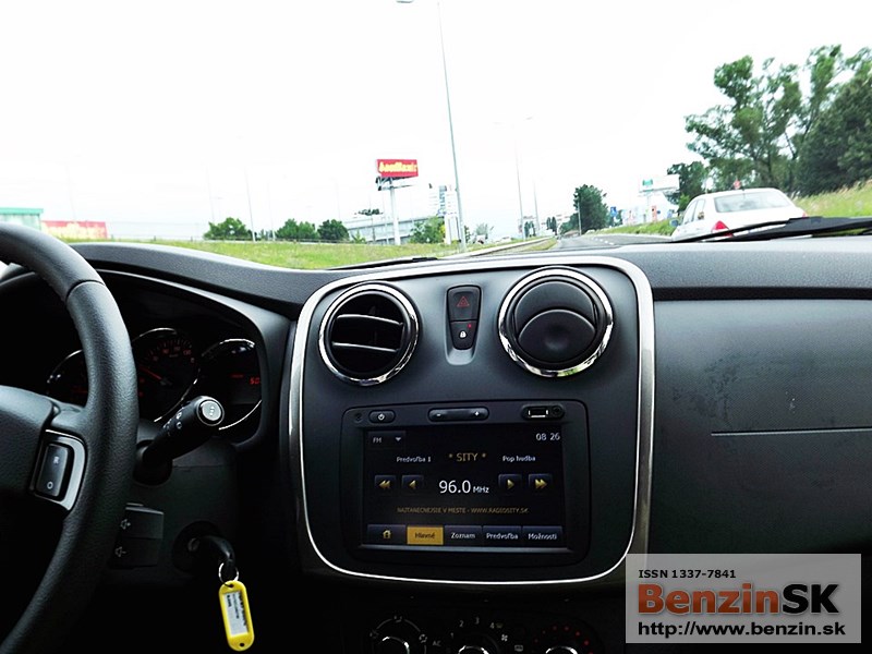 Prístrojová doska má chrómované orámovanie ukazovateľov a ergonomické ovládače. My sme mali vo výbave aj multimediálny navigačný systém MEDIA NAV s dotykovou 7" obrazovkou. Systém je v stredovom paneli, zahŕňa rádio, Bluetooth® a navigáciu s veľmi intuitívnym ovládaním. Prekvapením bol pre nás mužský hlas, keďže zvyčajne navigácia dáva pokyny ženským hlasom. Zostavu dopĺňa USB vstup, jack zásuvka a ovládače pod volantom.