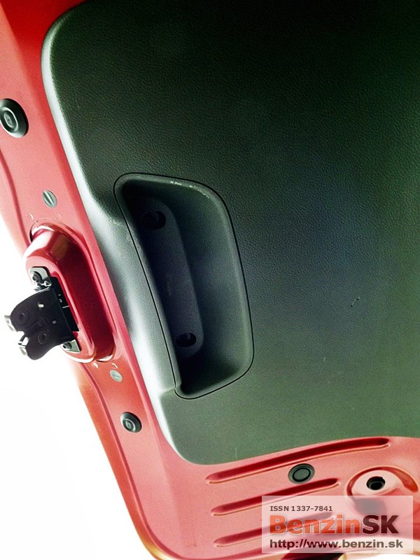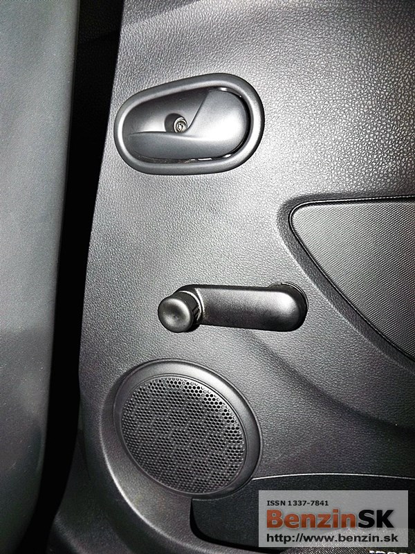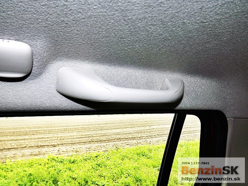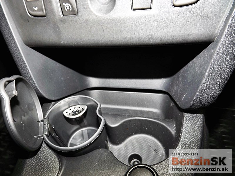 Priestor v interiéri je prakticky využitý - odkladacia schránka spolujazdca, priehradka uprostred palubnej dosky, držiak nápojov, priestor vo dverách na 1,5 l fľašu vpredu a o čosi menší aj v zadných dverách.
