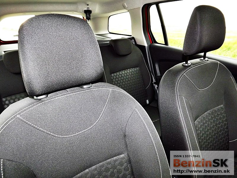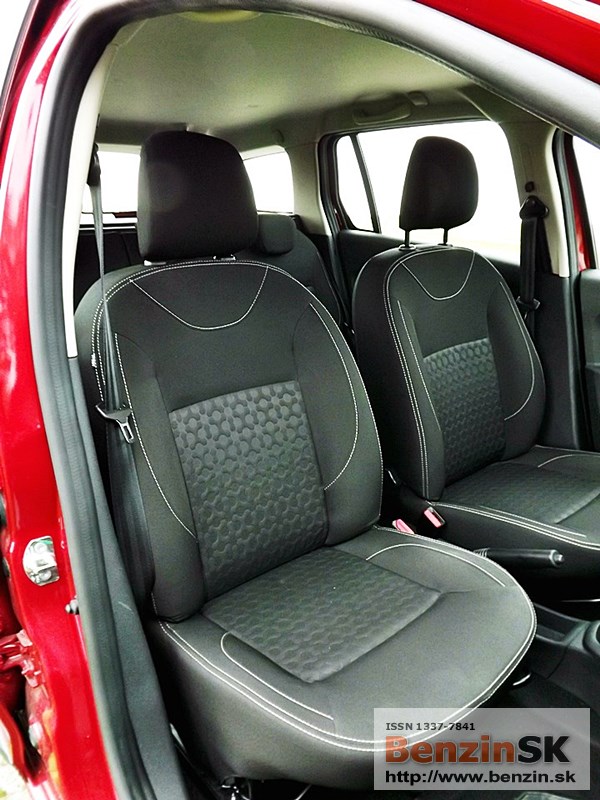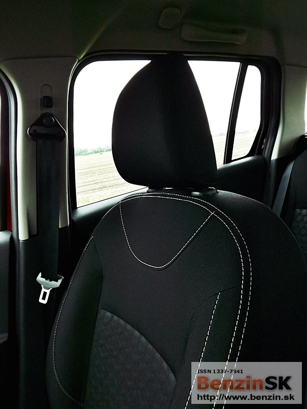 Sedadlá sú pohodlné, bezpečnostné pásy sú vpredu výškovo nastaviteľné. Je tu možnosť umiestnenia deliacej sieťky - ochrana cestujúcich (kabíny) pri preprave materiálu. Praktické umývateľné operadlá predných sedadiel podčiarkujú určenie tohto auta - jednoduchá údržba pri cestovaní s deťmi alebo pri preprave tovaru.