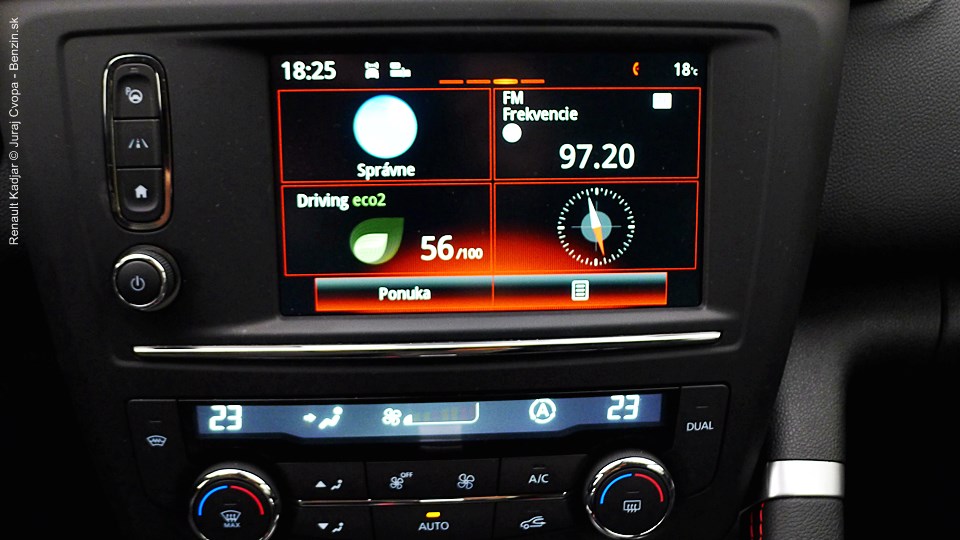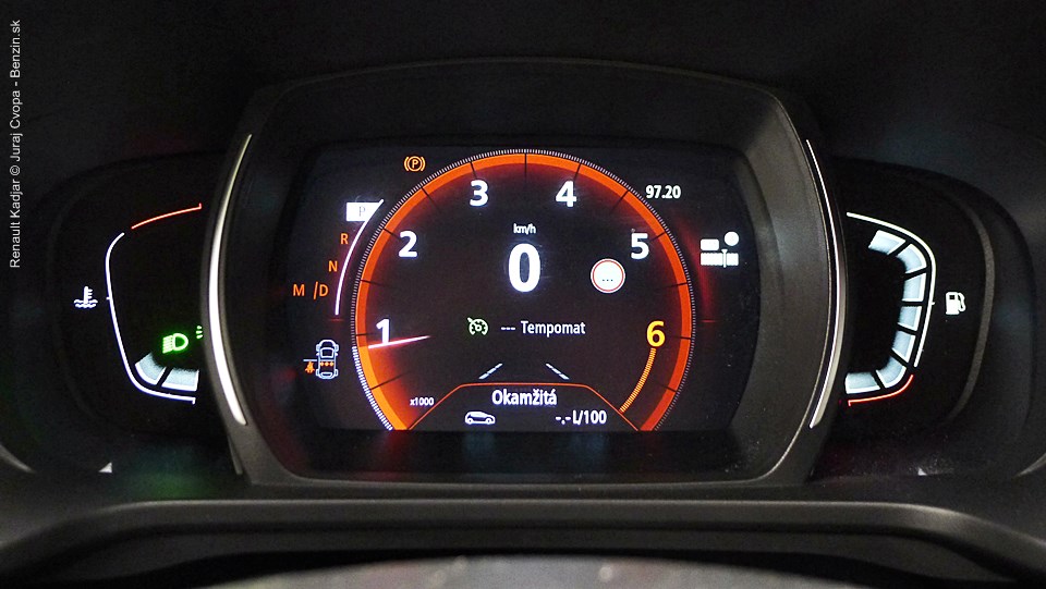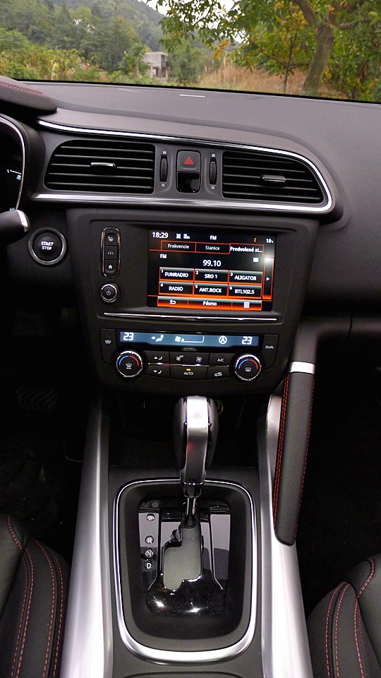 ![]() Exteriér Plavné línie s vyrysovanými svalmi a 200 mm svetlosťou odkazujú na mix SUV-čiek, ale aj sedanov a kombíkov. Predná maska pripomína úsmev a monumentálne logo sa nezdá byť tak nadopované, ako u menších modelov. Kapota sa v miestach nad blatníkmi ťahá hore ako voda na stenách kapilárky, čo dáva ozvláštňuje (a okliešťuje) výhľad z auta. Tá výška jej pomáha k plynulému estetickému napojeniu sa na A-stĺpiky. Pri pohľade z boku zaujme tvar línie spodnej hrany okien, ale aj obrovská vkusne tvarovaná bočná ochranná lišta medzi kolesami. Plní ochrannú funkciu, keďže prekrýva aj podbehy, čím chráni plech pred streľbou kamienkov spod kolies. Zastavím sa pri plechu: platforma CMF používa tenkostenný, lisovaný za tepla pri 900 °C a prudko schladený, čo mu dáva vysokú pevnosť ako aj nízku hmotnosť a ![]() hrúbka jeho antikoróznej vrstvy dosahuje 1000 mikrometrov, čo je výrazne nad priemerom branže (650 um). Ale späť k dizajnu. Zadná časť opäť myslí na ochranu karosérie svojou nelakovanou spodnou časťou nárazníka, čo som zbadal hneď po analýze koncových svetiel nie nadarmo roztiahnutých aj na zadných blatníkoch. Tá svetelná pomazánka totiž aj decentne svieti, čo poteší. Úroveň celého auta udržuje aj zadní časť a to sa v dnešnej dobe počíta najviac. ![]() Interiér Bezkľúčový prístup si žiada stláčať tlačidlo na dverách, čomu sa čudujem a zaháňam otázku ohľadne jeho životnosti. Po usadnutí za volant a nastavení posedu, zrkadiel, volantu a zresetovaní palubného počítača rovno vyrážam. Radia páka automatickej prevodovky ma trochu zarazila nevyzretosťou, ktorú potvrdila počas jazdy neustálym povrzgovaním plastíkov, kryjúcich dráhu páky. Spomínam pritom na Mégane a jeho manžetové krytie. To vzhľad páky manuálnej prevodovky viac padne do oka. Inak celkovo sa za volantom sedí veľmi dobre a to aj vďaka celokoženkovým sedadlám a ich penovej výplni s dvojitou tuhosťou. Pasujú na telo, poskytujú komfort aj podporu, sú priestorovo úsporné vo vzťahu k cestujúcim vzadu a ich trojštvrťové bočné vedenie sadne hádam každej postave. Harmóniu narúša tvrdá hrana stredovej konzoly, o ktorú sa musí opierať pravé koleno. Inak vypracovanie interiéru a jeho čalúnenia je precízne, so skvelou ergonómiou a dizajnom, čo viac menej vyváži spomenuté nedostatky. Je tu cítiť šírku (1.84 m) a priestrannosť. Crossoverovský „touch and feel“ zdôrazňujú madlá na dverách a stredovej konzole. ![]() Prístrojový štít by som najradšej prirovnal k nejakej hre, je plne digitálny, ukazuje všetko možné a teda dostal aj chameleónovské spôsoby, keďže sa dá zmeniť jeho vzhľad (otáčkomer, rýchlomer, mód economy alebo sport). Mimo iné tu je aj ukazovateľ hp/Nm, ktorý sa dá zmeniť na rádio, či piktogramovú navigáciu. Ukazovatele paliva a teploty motora sú digitálne tiež, ale nepochopiteľne hrubo segmentované. Aký kontrast k precíznosti stredového prístroja. Pre teplotu vody je to ešte ok, no pre palivo by som volil určite jemnejšie delenie, pri konci poľa sa to hodí. Zlaté analógové ručičky. Už akoby bol Mégane v rámci ponuky Renaultu etalónom. No nie je to tak, pretože dávam na tomto mieste veľké hurá pre klasické ovládače vetrania a kúrenia. Žiadne softvérové riešenia, tak to má byť. ![]() Vysokú funkcionalitu dodáva autu palubný systém R-Link 2 so 7“ kapacitným dotykovým displejom a ovládaním podobným tabletom. Podobne ako v Mégane, sa tu dajú ovládať nastavenia kompletnej sady jazdných asistentov, navigácia, telefón, multimédiá, príp. aplikácie, stiahnuteľné cez internet z R-Link Store obchodu (apky pre jazdu, cestovanie, správy, sociálne médiá a iné praktické riešenia). Chválim pekne animovanú navigáciu s vtáčou perspektívou a Kadjarom ako ikonou. ![]()