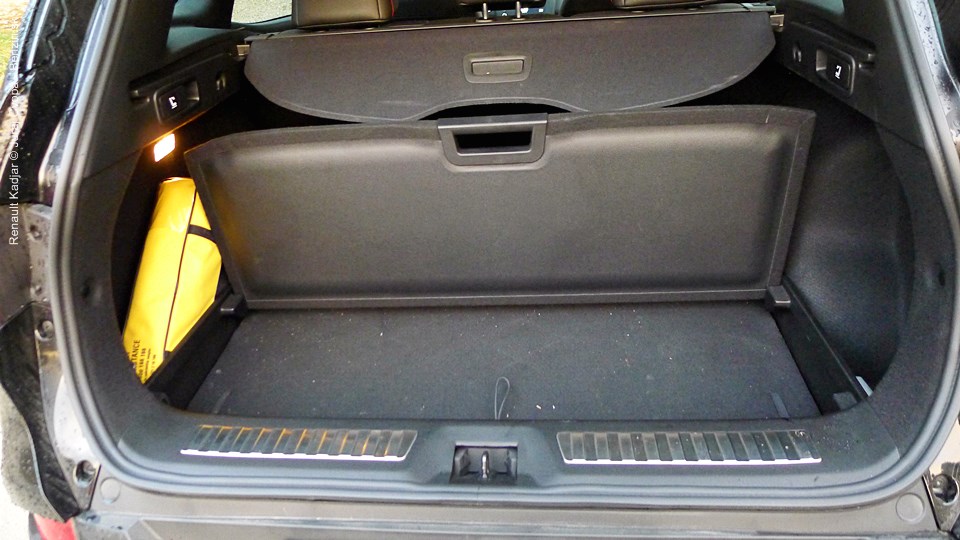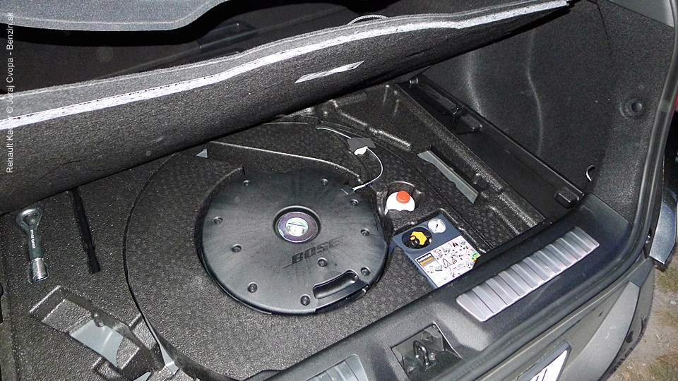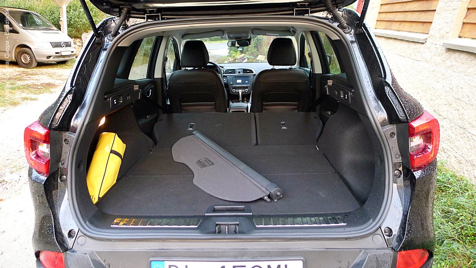![]() Posed na zadných sedadlách poskytuje dostatok priestoru, a to vo všetkých smeroch. Zarazila ma absencia vetracích výduchov pre zadných cestujúcich. Opakujem, že toto je najvyššia výbava (a Mégane to má – opakujem sa, ja viem). ![]() Batožinový priestor sa ľahko rozšíri automaticky sklápateľnými delenými operadlami (vznikne rovná podlaha), plus je tu možnosť sklopiť operadlo spolujazdca a takto previesť predmety dlhé do 2.5 m, alebo použiť toto operadlo ako stolík. Podlaha batožinového priestoru je delená, vyššia pozícia vytvára rovnú podlahu pri sklopených operadlách, po odstránení plata podlahy sa dá využiť väčší objem (472 litrov). Pod podlahu sa dá schovať horné rolo. ![]() Motor, prevodovka a jazda