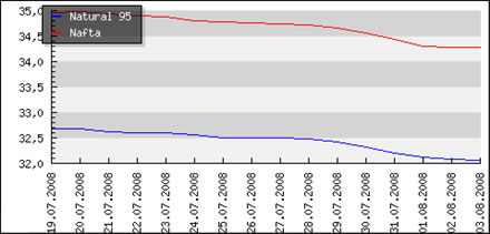 | Priemerné ceny pohonných hmôt v Českej republike k 4.8.2008 |