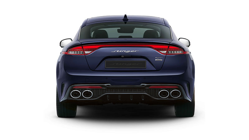 Predná maska modelu Stinger typická pre značku Kia, tzv. „tigrí nos“, spája nové multifunkčné LED predné svetlá s novým dizajnom a dennými LED svetlami. Keď sú svetlá vypnuté vyzerajú tmavšie a elegantnejšie a vďaka ostrým hranám jemne nakloneným smerom k prednej časti vozidla mu dodávajú modernejší svetelný podpis.
