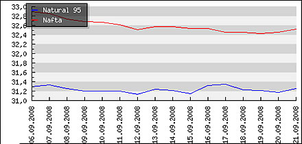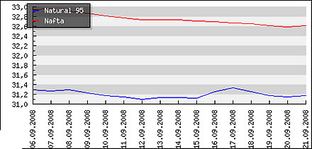 | Priemerné ceny pohonných hmôt v Českej republike k 22.9.2008 |