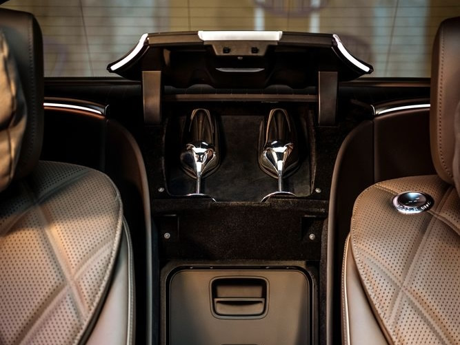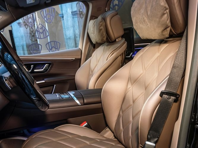 Vzor Maybach s viacerými malými emblémami so značkou sa nachádza aj na ozdobných prvkoch bočného nárazníka. Svetlomety DIGITAL LIGHT vítajú vodiča a tiež sa s ním lúčia prostredníctvom špeciálnych svetelných efektov. Ako ďalší pozdrav sa na všetkých štyroch dverách rozsvecuje animovaná projekcia vzoru Maybach.