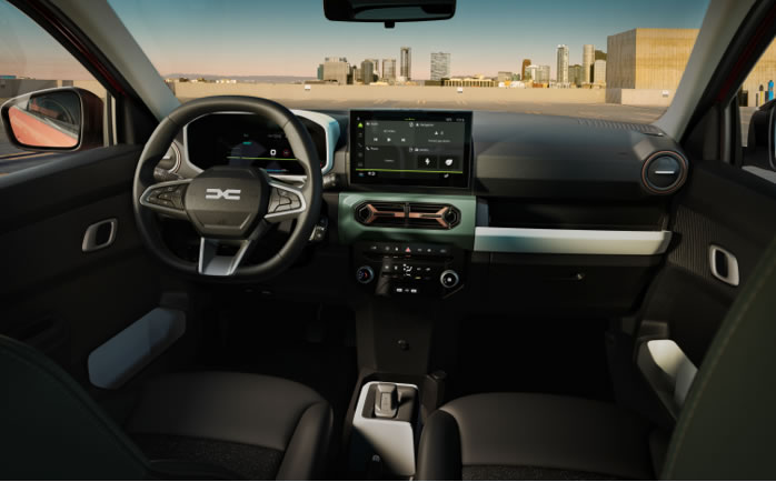 ![]() Nová identita značky Dacia sa dá spoznať v dvoch čiernych pruhoch, jedného vpredu a druhého vzadu, ktoré sa stretávajú v lesklom prevedení so špecifickými matnými pruhmi na zadnej časti karosérie. Tieto dva pruhy sú sprevádzané symbolickým svetelným podpisom značky v tvare písmena "Y", ktorý je obzvlášť výrazný na predných svetlometoch s denným svietením a na zadných svetlometoch, ktoré sú tvorené LED diódami. ![]()