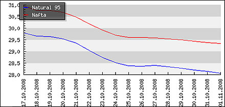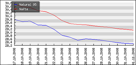 | Priemerné ceny pohonných hmôt v Českej republike k 3.11.2008 |