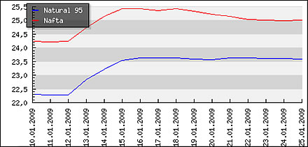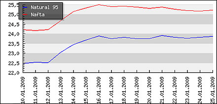| Priemerné ceny pohonných hmôt v Českej republike k 26.1.2009 |