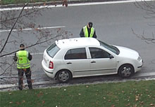 e) kontrolovať technický stav vozidla a úplnosť jeho výstroja a výbavy alebo vyzvať vodiča, aby sa podrobil takejto kontrole, ako aj porovnať údaje uvádzané v osvedčení o evidencii s údajmi na vozidle,