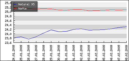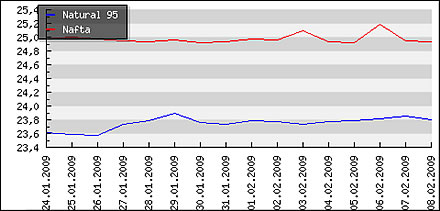 | Priemerné ceny pohonných hmôt v Českej republike k 09.02.2009 |