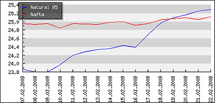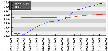 | Priemerné ceny pohonných hmôt v Českej republike k 23.02.2008 |