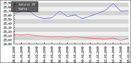 | Priemerné ceny pohonných hmôt v Českej republike k 17.03.2008 |