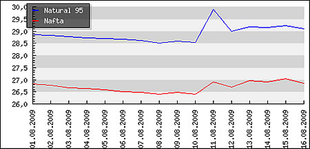 Vývoj priemerných cien pohonných hmôt v Moravskoslezskom kraji ČR: ![]()