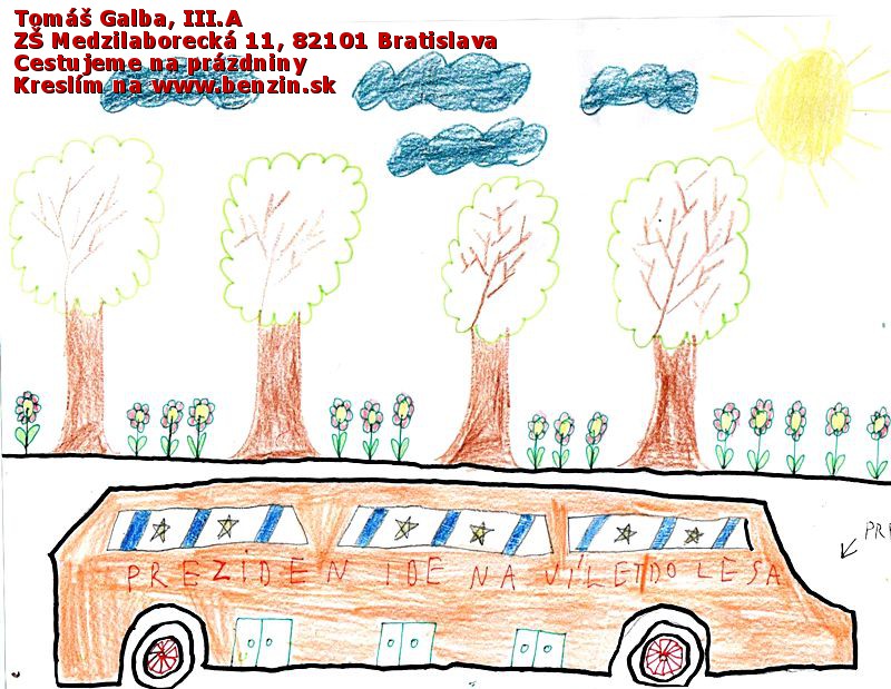 Uverejníme všetky kresby, ktoré nám pošlete najneskôr do 15.06.2011 buď emailom (kreslim@benzin.sk) alebo poštou na našu adresu: