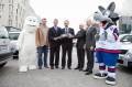 ![]() zľava: maskot Yeti, hokejista Richard Lintner, Ing. Robert Baumgartner – konatel a riaditel SKODA AUTO Slovensko, Igor Nemecek – generalny riaditel MS, Peik von Bestenbostel – sef komunikacie Skoda Auto, Bruno Marty – riaditel divizie zimnych sportov spolocnosti Infront Sports & Media, maskot Goooly.