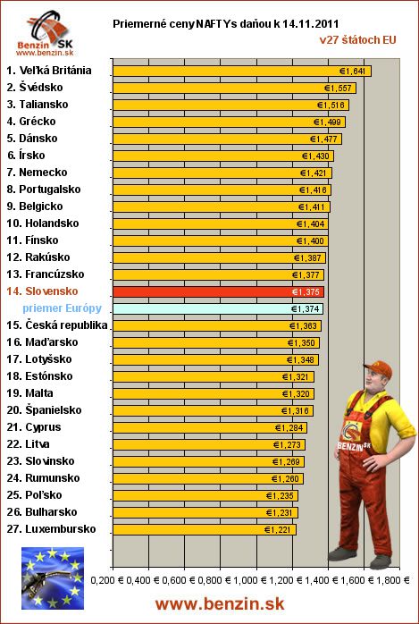Nasledujúce údaje sú spracované podľa informácií EUROSTATU vydaných 16.11 k 14.11.2011 za obdobie v 45.týždni (od 07.11.2011 - 13.11.2011),