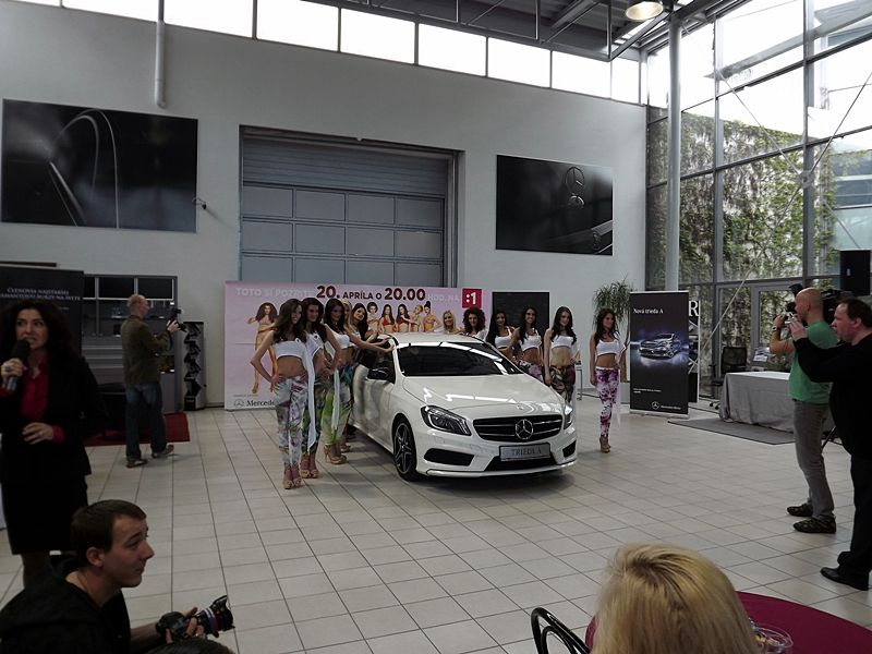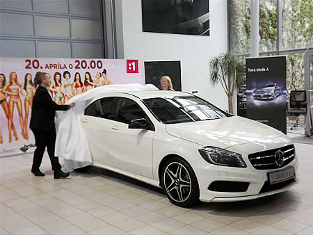 Popri kráse dievčat sa prítomní zástupcovia médií kochali aj odhaleniu automobilu Mercedes-Benz triedy A novej generácie, ktorý bude parkovať v garáži víťazky súťaže od tohto piatku.
