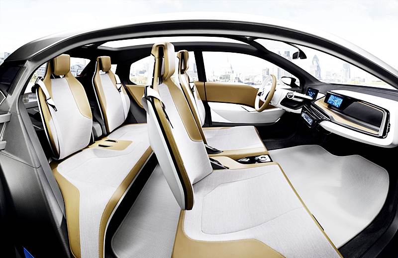 BMW i3 prinesie novú éru automobilovej konštrukcie, nielen vďaka čisto elektrickému pohonu a priestoru pre posádku z karbónu, ale aj vďaka interiéru, dôsledne orientovanému na udržateľnosť. V Paríži sa predstaví nová verzia konceptu BMW i3, ktorá to potvrdí. Napríklad eukalyptové drevo, použité na palubnej doske, pochádza z udržateľného zdroja v Európe a je spracované výlučne prírodnými substanciami. Vysoko kvalitné čalúnenie sedadiel má extra jemný povrch, dosiahnutý činidlami získanými z olivových listov. Navyše, časti palubnej dosky a obkladu dverí sú vyrobené z prírodnej vlnenej tkaniny.