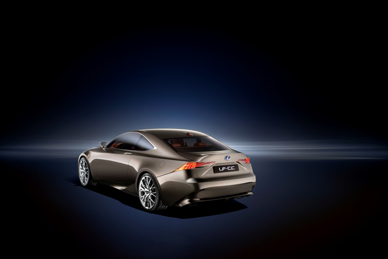 Aerodynamické rebro splýva so zvažujúcou sa líniou strechy do výrazného zadného spojlera integrovaného vo veku batožinového priestoru. Toto riešenie predstavuje harmonické spojenie dizajnu a aerodynamických prvkov, ktoré vozidlu dodávajú charakteristické proporcie typické pre kupé. Po celej šírke zadnej časti koncepčné vozidla LF-CC sa tiahne nárazník, ktorý prechádza do oblúkov zadných kolies a zdôrazňuje široký, pevný postoj vozidla. Kombinované svetlá v tvare písmena L, charakteristické pre vozidlá značky Lexus, sa vyznačujú vrstvovitým výrazne trojdimenzionálnym dizajnom, pričom v spodnej vyhĺbenej časti nárazníka zaujme spojler tiahnúci sa celou šírkou vozidla, čo zvyšuje trakčné schopnosti zadného pohonu. Zadné brzdové svetlo je atraktívne zakomponované do strešnej antény s tvarom žraločej plutvy.