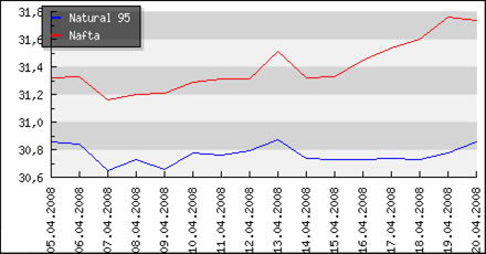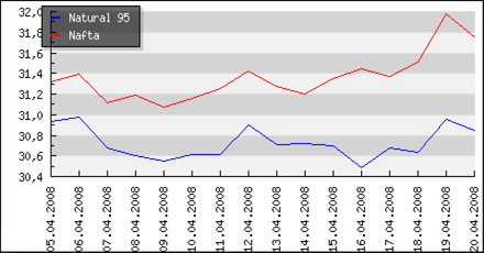 | Vývoj cien pohonných hmôt v Českej republike k 17.3.2008 |