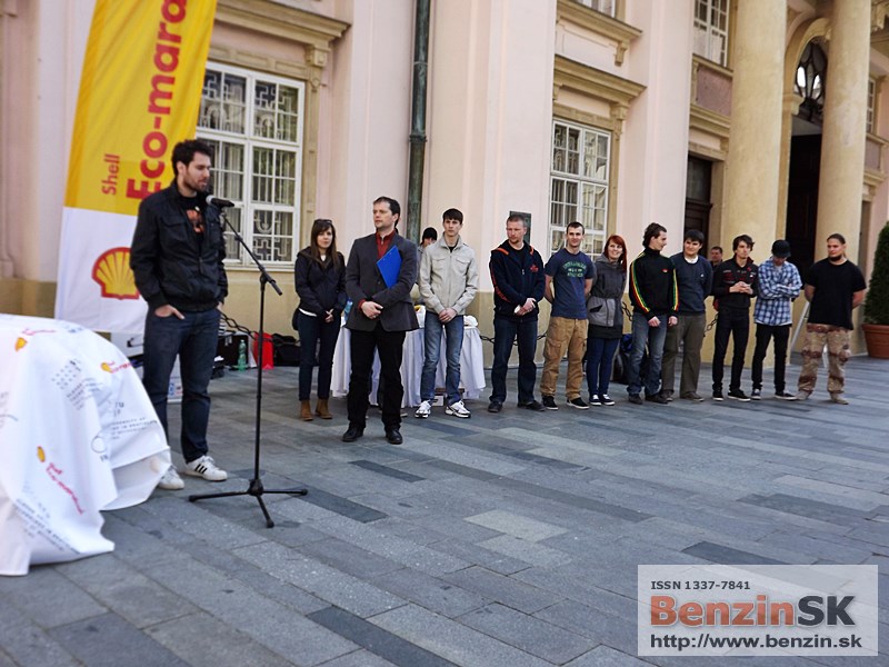 Video: Odhalenie prototypu automobilu teamu FME RACING TEAM (Petr Šindler - manažér komunikácie spoločnosti Shell, Ing. Ľubomír Šooš, PhD. - dekan Strojníckej fakulty STU, doc. RNDr. Milan FTÁČNIK, CSc. - primátor hlavného mesta SR Bratislavy, Tomáš Milesich a Daniela Welnitzová z FME Racing Team) Fotogaléria k článku: